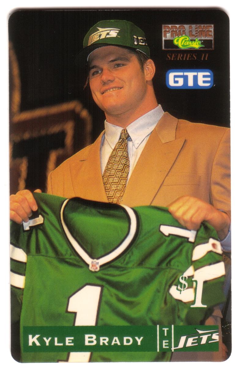 Overall, this card serves as a sports collectible featuring Kyle Brady as a New York Jets tight end, embodying his role in the National Football League. It is part of a numbered series, making it a distinct item in a football card collection.