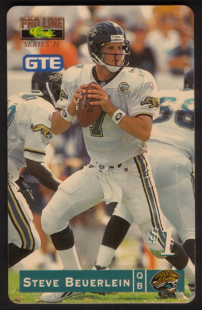 This collection features a complete set of 30 different collectible football player phone cards from the Pro Line Classic Series II, each sporting a $1 value and the GTE logo prominently displayed. Each card showcases a professional NFL player, their action photograph, name, position, and team logo in clear and vibrant detail. The players are depicted in various game or practice moments, wearing their distinct team uniforms representing teams including the Dallas Cowboys, Jacksonville Jaguars, New England Patriots, San Francisco 49ers, Kansas City Chiefs, New York Jets, Cincinnati Bengals, Carolina Panthers, Indianapolis Colts, San Diego Chargers, Pittsburgh Steelers, Atlanta Falcons, Washington Redskins, Tampa Bay Buccaneers, Cleveland Browns, and Green Bay Packers.