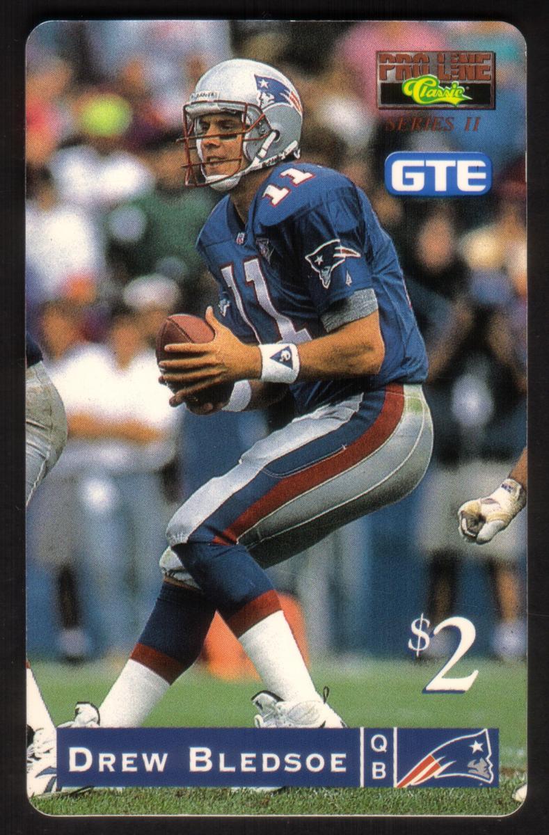 This collectible card features Drew Bledsoe, a professional football player who played in the National Football League (NFL). The card is labeled as number 8 out of a limited edition of 25, indicating its rarity. It is part of the Proline 2 series produced by The Score Board (GTE). The card’s design prominently includes the name "Drew Bledsoe" and the number “2” representing the Proline 2 series.