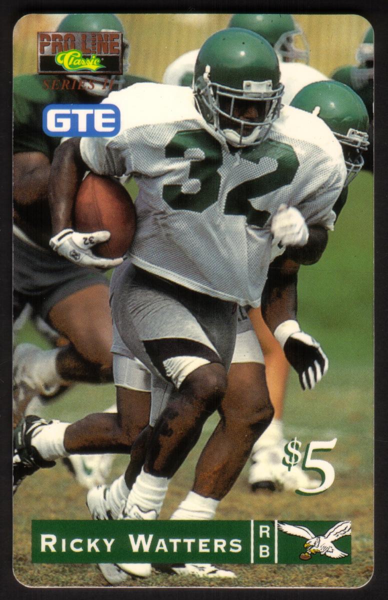 This collectible card features Ricky Watters, a professional football player who competed in the National Football League (NFL). The card is part of a series called Proline 2 and is numbered 12 out of 15 in the collection. Ricky Watters is depicted wearing his football uniform, which includes a helmet and team gear, standing in an action pose. The card prominently displays the player’s name, “Ricky Watters,” in bold text.