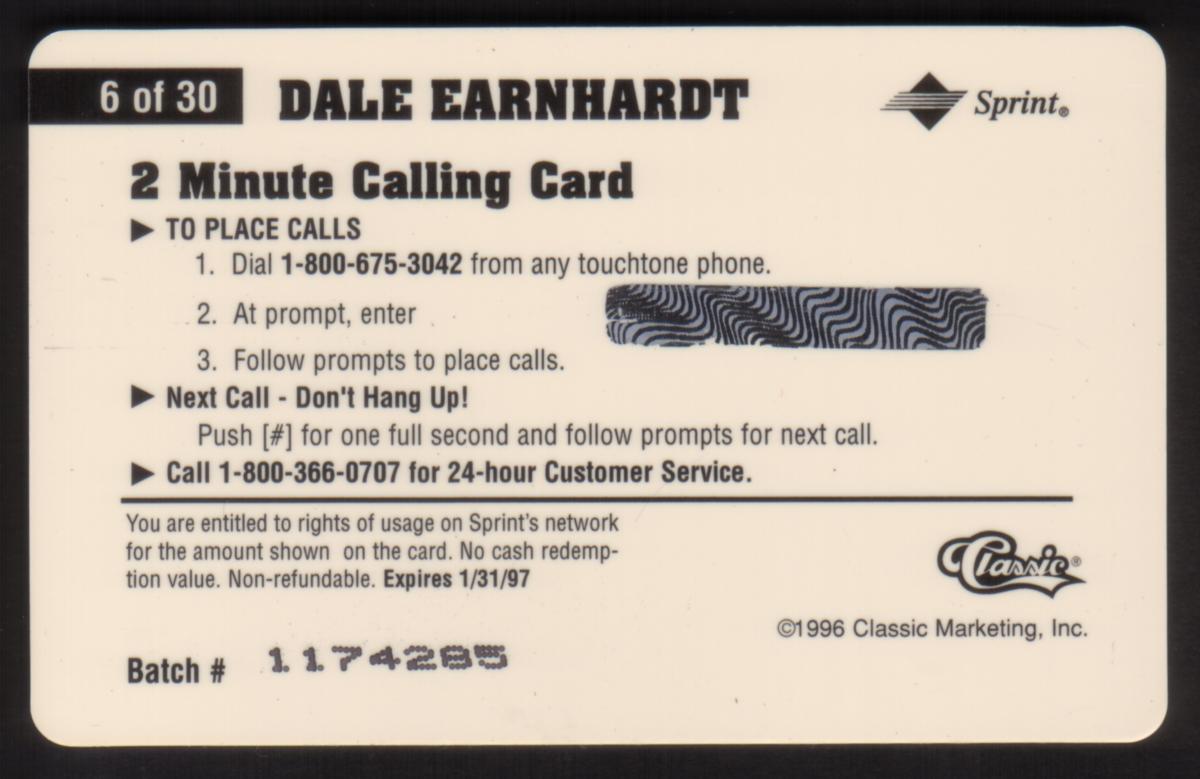 Since we have the world's largest inventory of USA phonecards for collectors, you will not necessarily receive the identical serial/batch/PIN number that we have scanned/pictured.