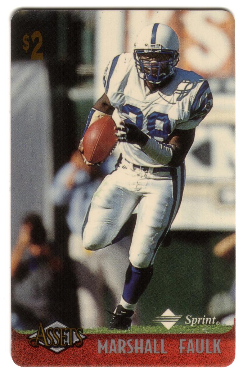 Additionally, NFL branding appears on the card, confirming its official connection to the National Football League. The card highlights Marshall Faulk’s status as a key player during the 1996 NFL season, making it a valuable collectible for football fans and card collectors alike.