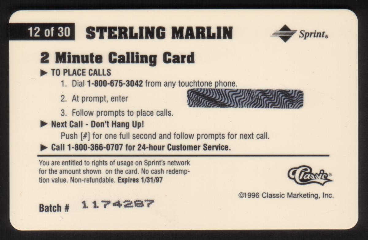This card emphasizes Sterling Marlin’s association with NASCAR and automotive sports, combining his image with corporate branding from Sprint. The overall design highlights Marlin’s persona as a notable figure in auto racing.