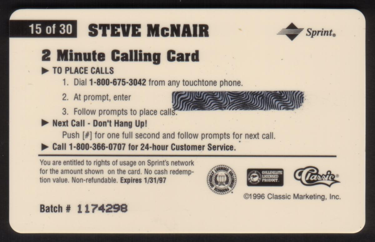 Since we have the world's largest inventory of USA phonecards for collectors, you will not necessarily receive the identical serial/batch/PIN number that we have scanned/pictured.