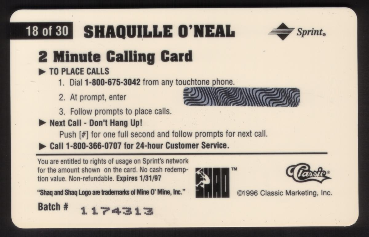 Since we have the world's largest inventory of USA phonecards for collectors, you will not necessarily receive the identical serial/batch/PIN number that we have scanned/pictured.