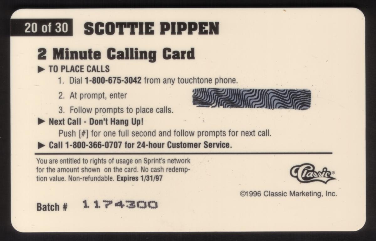 Since we have the world's largest inventory of USA phonecards for collectors, you will not necessarily receive the identical serial/batch/PIN number that we have scanned/pictured.