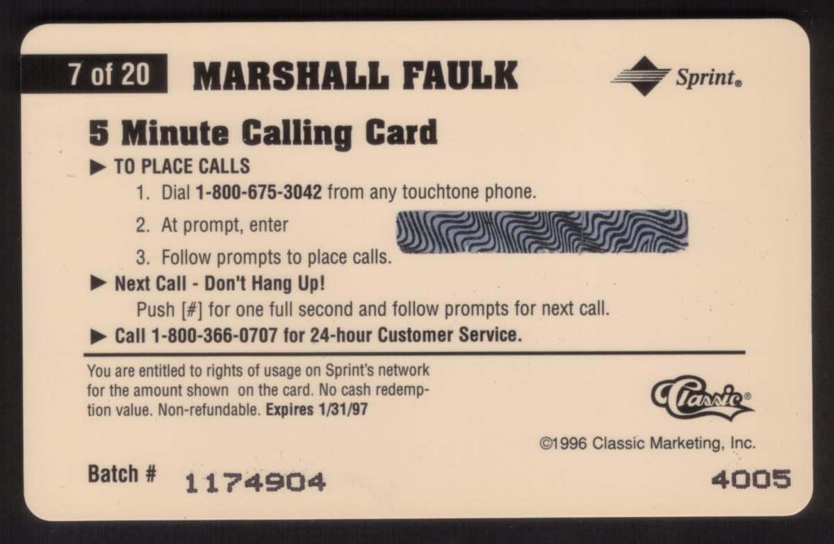 Since we have the world's largest inventory of USA phonecards for collectors, you will not necessarily receive the identical serial/batch/PIN number that we have scanned/pictured.