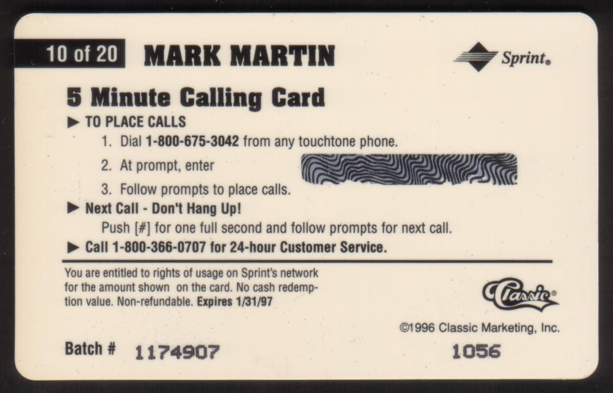 Since we have the world's largest inventory of USA phonecards for collectors, you will not necessarily receive the identical serial/batch/PIN number that we have scanned/pictured.