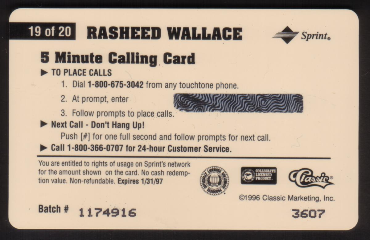 This item is a collectible sports card related to basketball and the NBA, featuring one of the notable basketball players from that era. The imagery and text highlight Rasheed Wallace's collegiate team, the University of North Carolina, emphasizing his presence in basketball history.
