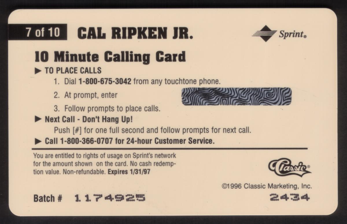 Since we have the world's largest inventory of USA phonecards for collectors, you will not necessarily receive the identical serial/batch/PIN number that we have scanned/pictured.