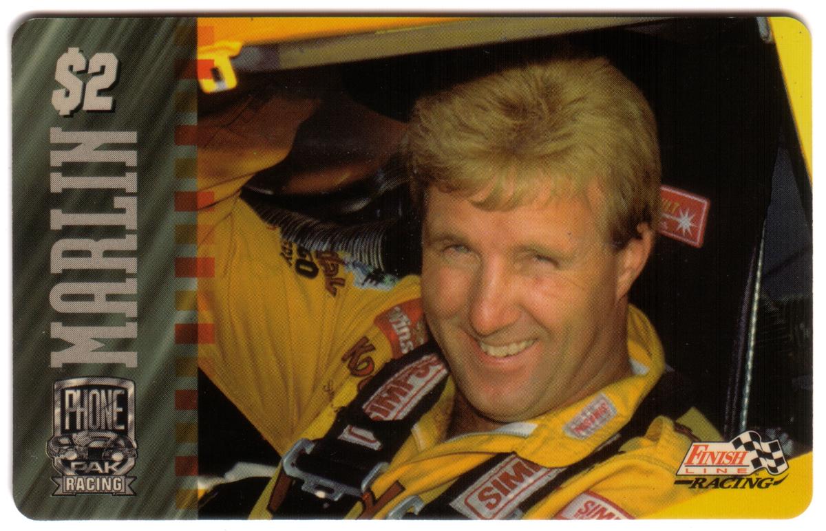 Overall, the card merges iconic automotive visuals and corporate branding directly related to NASCAR racing with Sterling Marlin’s presence, making it a collectible item for enthusiasts of both phone cards and motorsports memorabilia.