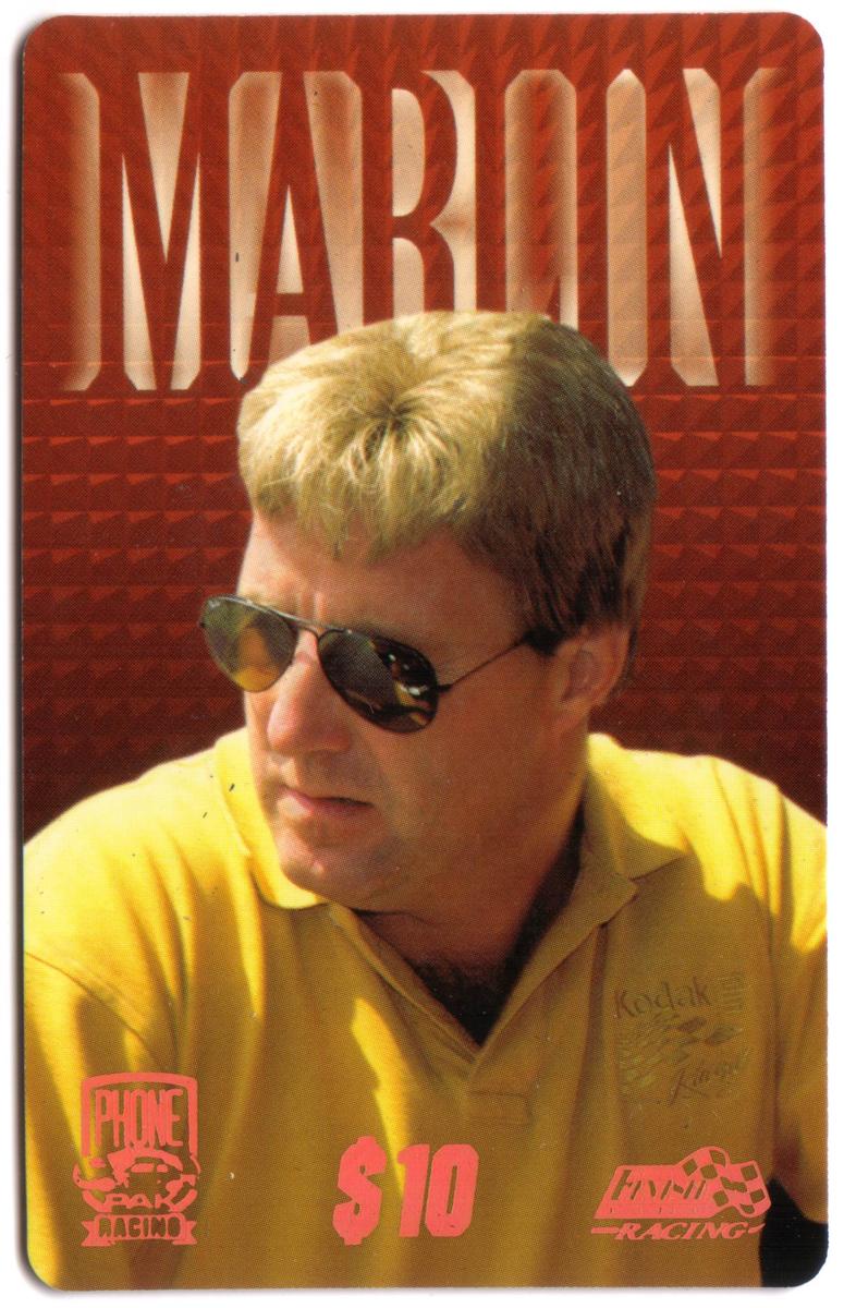 The brand name PhonePak is printed clearly, tying the card to the 1996 series of collectible phone cards. The card’s colors and layout capture the dynamic nature of auto racing, using logos and trademarks linked to Sterling Marlin’s racing career. This makes it a desirable item for fans of NASCAR and collectors of automotive-themed phone cards.