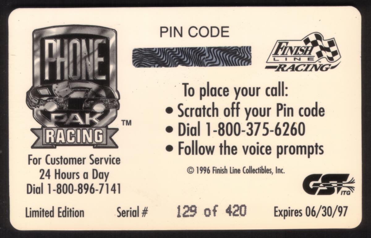 | PhonePak 1996 $50. Ernie Irvan (Texaco, Havoline) |