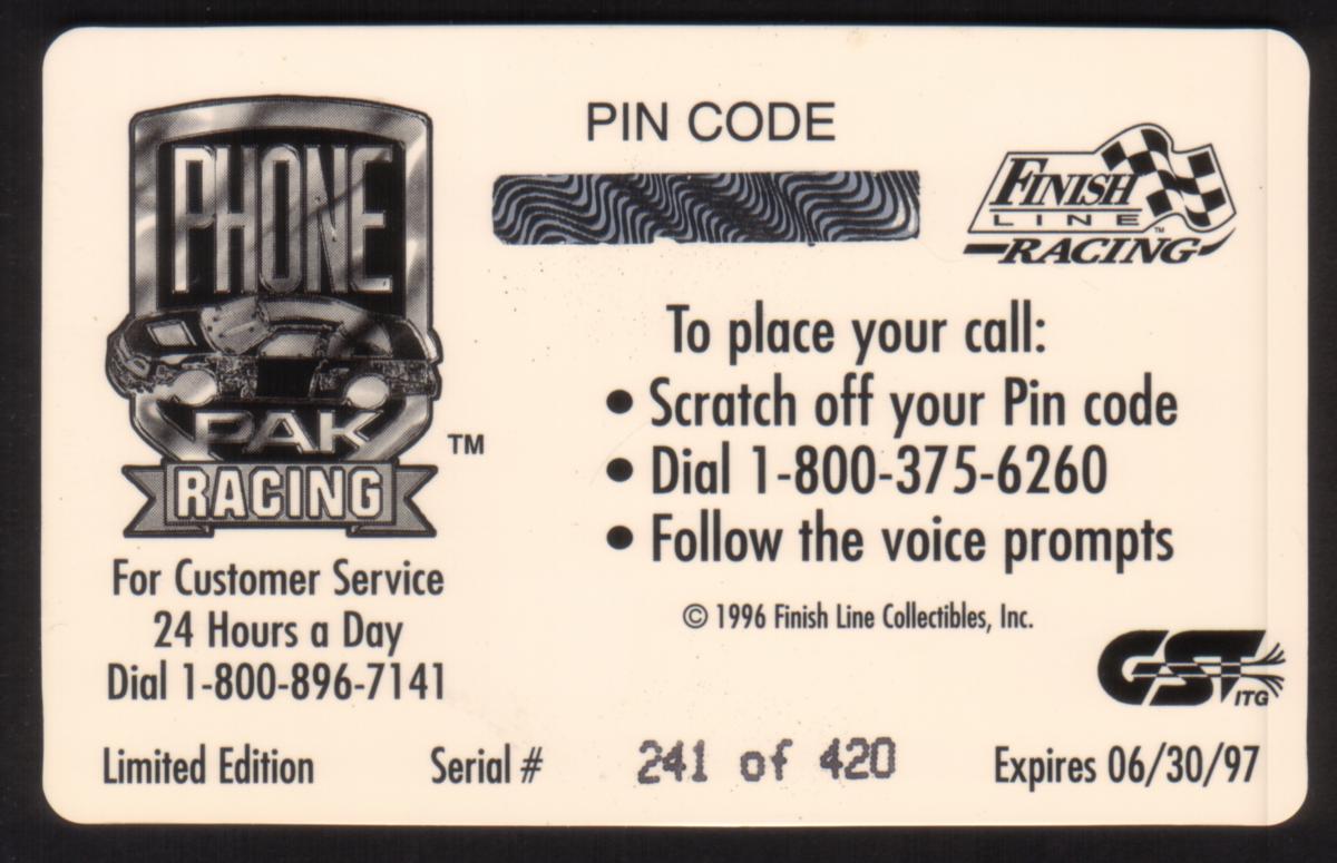 | PhonePak 1996 $50. Mark Martin (Valvoline, Reeses, Winston Cup) |