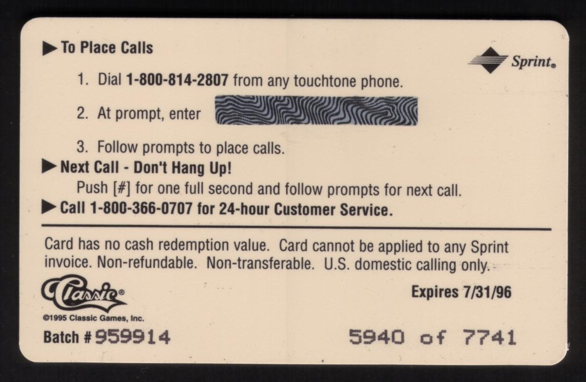 Since we have the world's largest inventory of USA phonecards for collectors, you will not necessarily receive the identical serial/batch/PIN number that we have scanned/pictured.