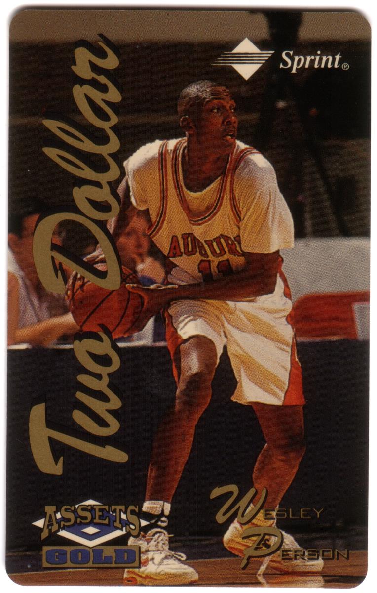 Overall, this phone card is a commemorative item honoring Wesley Person, showcasing details such as the NBA logo, basketball imagery, and the player himself. The text and logos on the card solidify its authenticity and highlight its focus on professional basketball within the NBA.