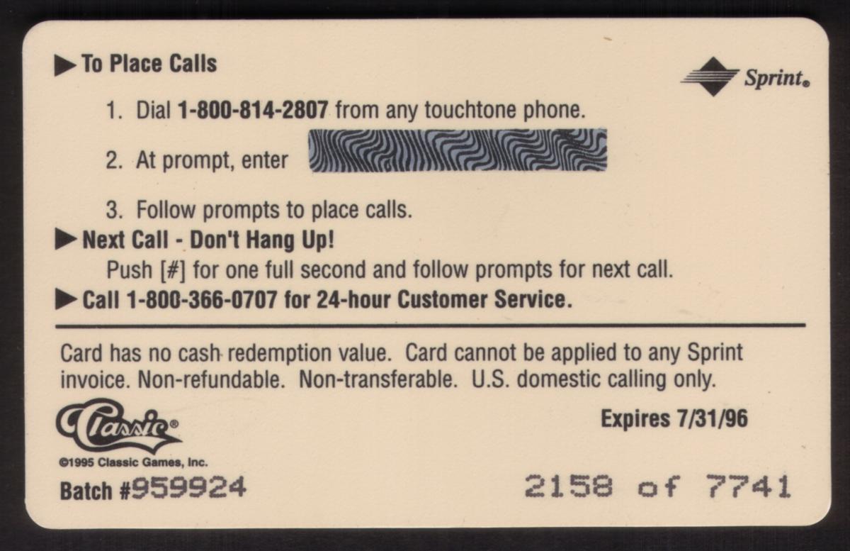 Since we have the world's largest inventory of USA phonecards for collectors, you will not necessarily receive the identical serial/batch/PIN number that we have scanned/pictured.