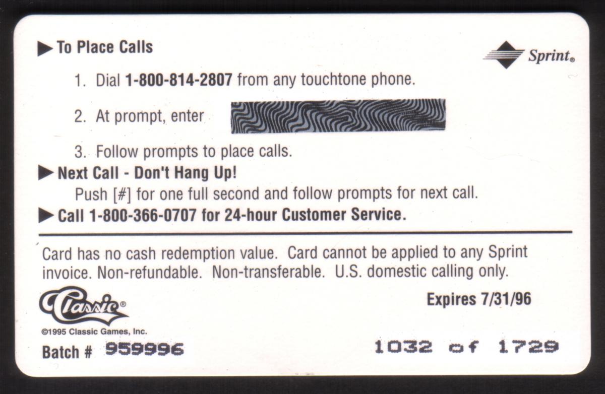 Since we have the world's largest inventory of USA phonecards for collectors, you will not necessarily receive the identical serial/batch/PIN number that we have scanned/pictured.