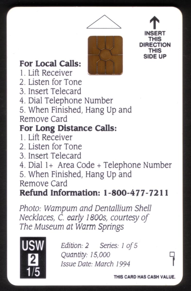 Keywords: Americana, museum at Warm Springs oregon, native american artifact, indian, traditions, sacred artifacts, confederated tribes of the warm springs reservations, tribal, wasco, paiute, money, currency, chip card, us west, gemplus chip, U.S. West Commun.