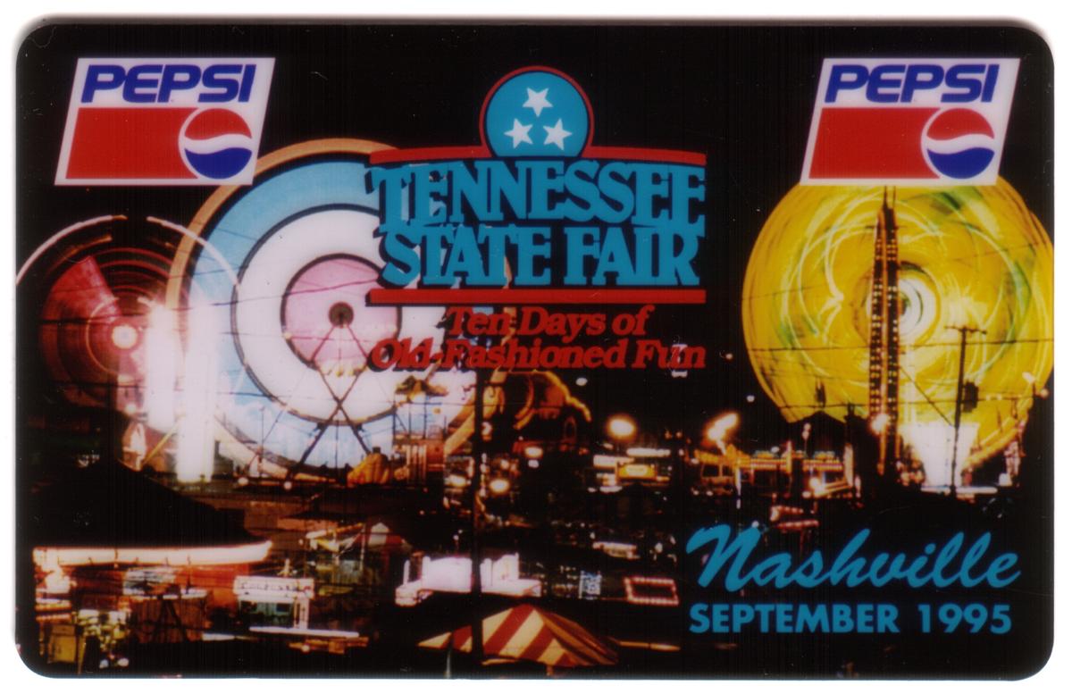 Overall, this phone card commemorates a notable event at the Nashville State Fairgrounds in 1995, linking the well-known Pepsi-Cola brand with the annual celebration of fairs and amusement rides in Tennessee. The combination of logos, text, and thematic elements makes it a distinct and factual representation of this promotional event.