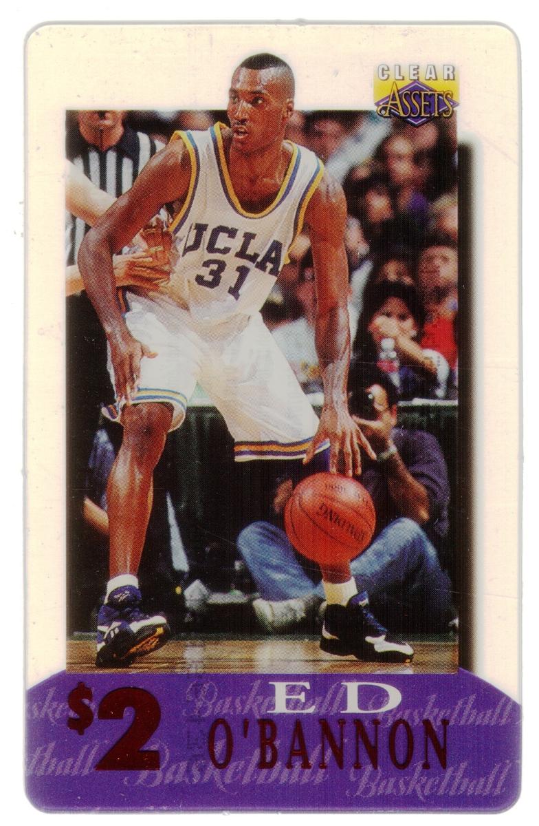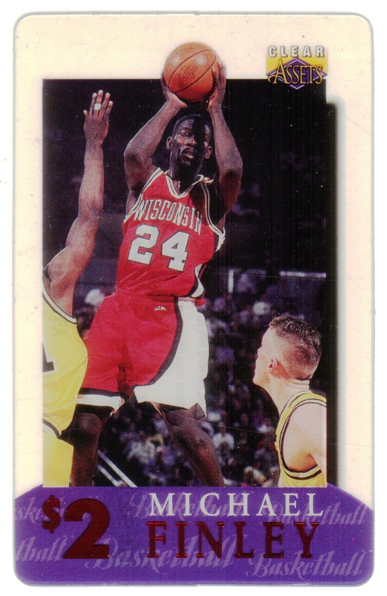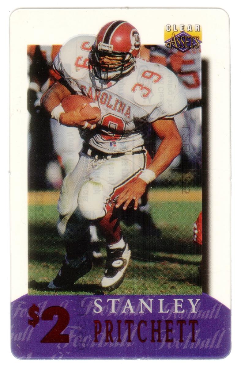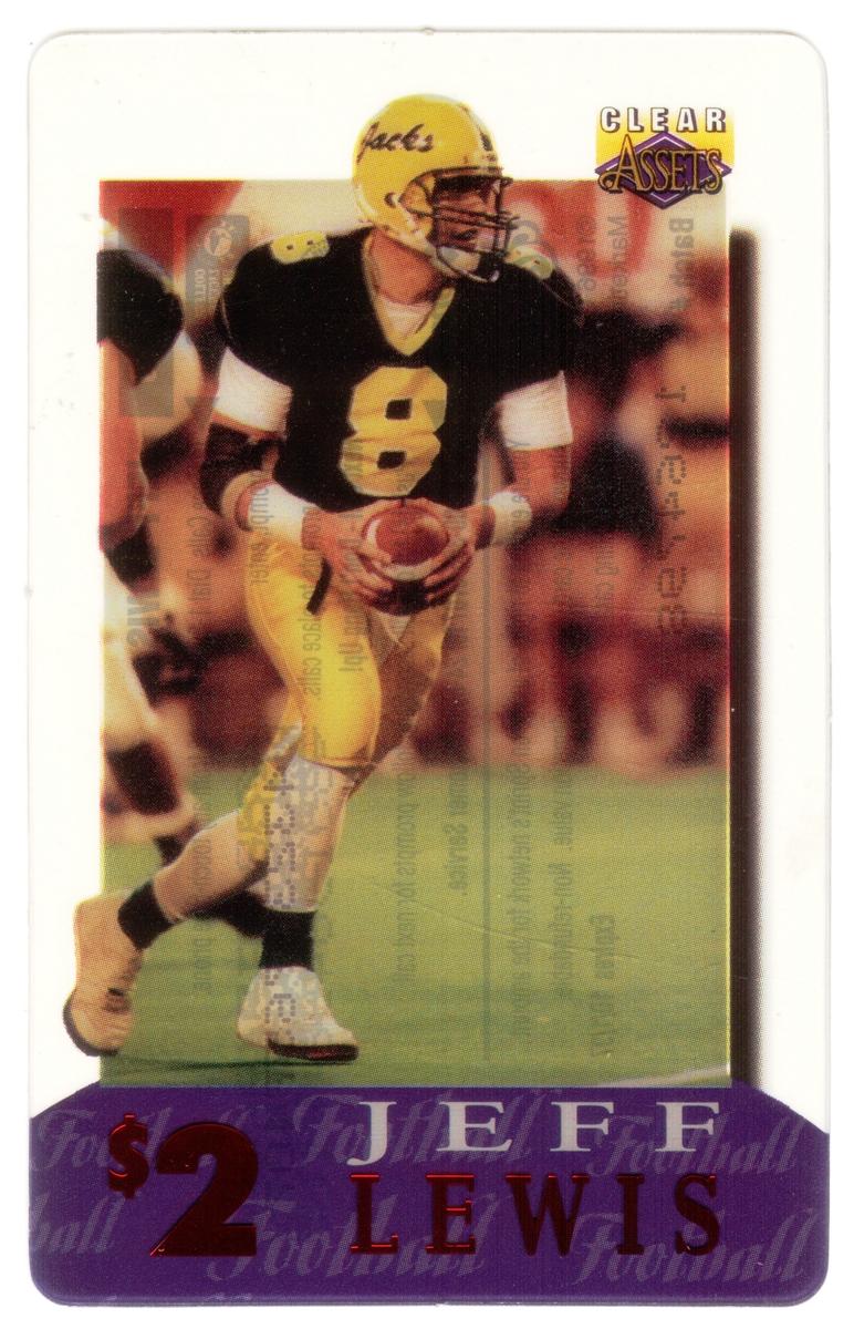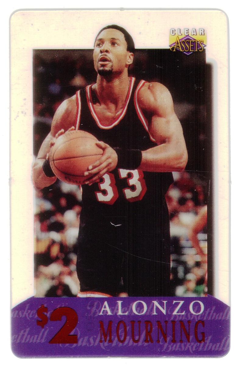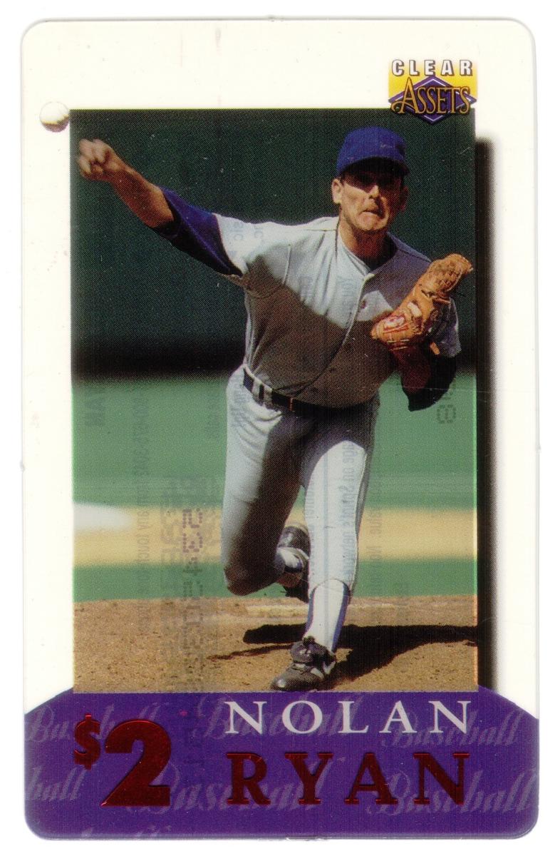This collection consists of 30 different collectible $2 sports-themed phone cards issued by Clear Assets in 1996. Each card features a photographic image of a well-known athlete in action or posed during their respective sports. The cards represent a variety of sports including football, basketball, baseball, hockey, and auto racing. The Clear Assets logo is placed in the top right corner of each card, while the athlete's name and the $2 denomination are prominently displayed at the bottom on a purple background strip.