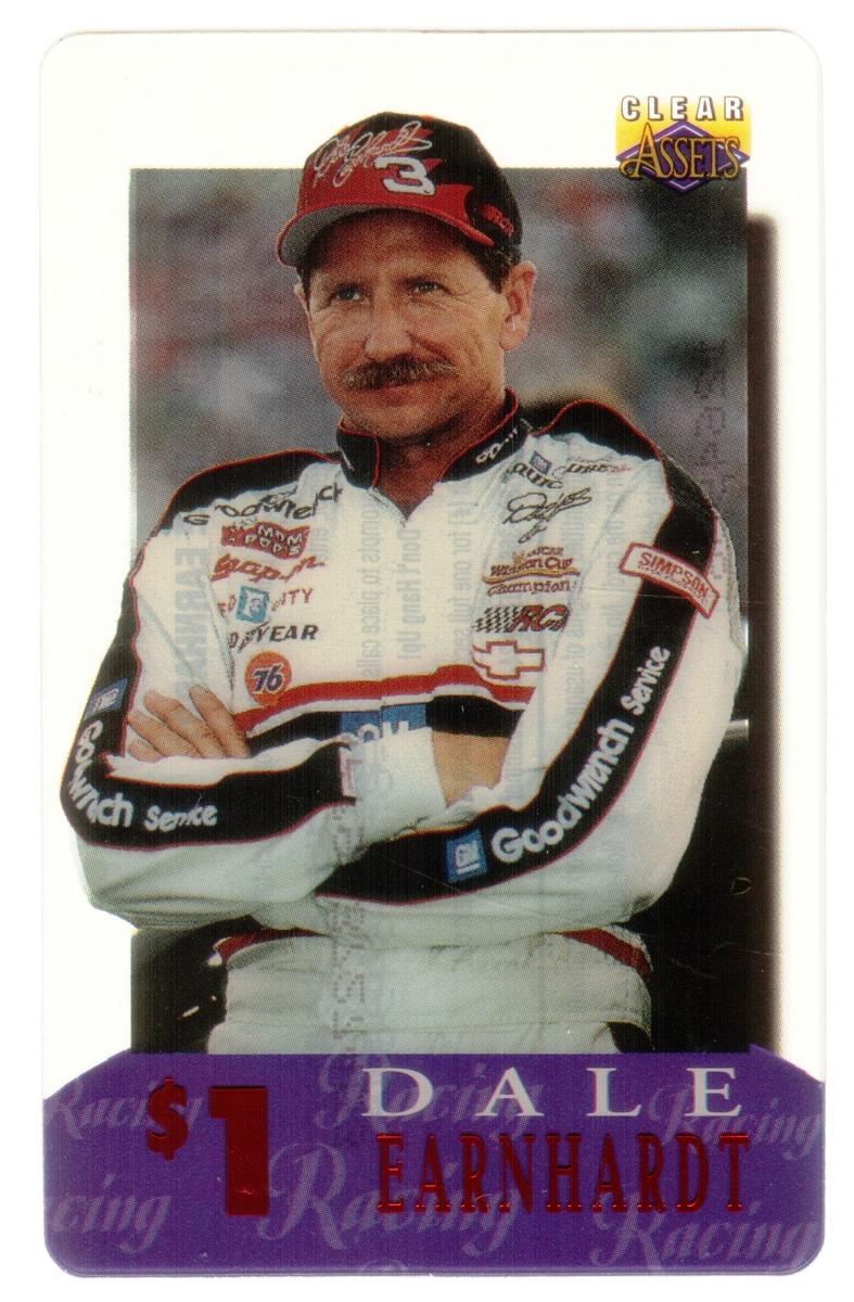 The front of the card showcases a photograph of a black race car adorned with the Goodwrench brand, emphasizing Dale Earnhardt’s connection to the automotive sport. The car is captured in a racing environment, underscoring the high-speed competitive nature of NASCAR. The design includes clear branding and racing-related imagery that ties directly to Dale Earnhardt’s iconic presence in auto racing history.