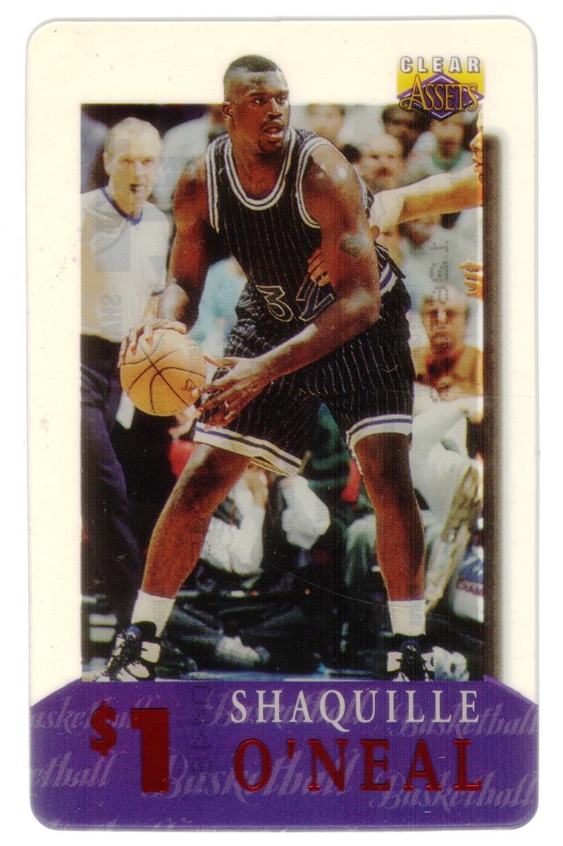 This is a complete set of 30 different collectible Sports Clear Assets cards issued in 1996 by The Score Board Inc. Each card displays a high-quality photographic image of a famous athlete in action or portrait style, framed by a white border and topped with the Clear Assets logo in the upper right corner. A purple band runs along the bottom of each card with the denomination "$1" in red on the left side and the athlete’s name in bold all capitals printed in purple and red.