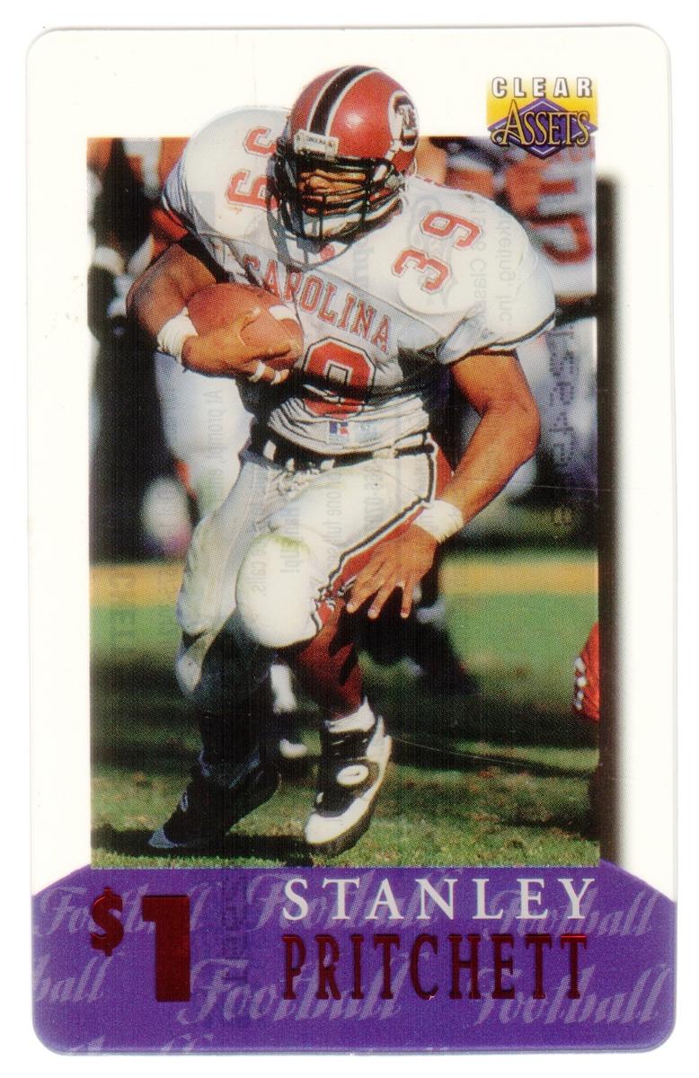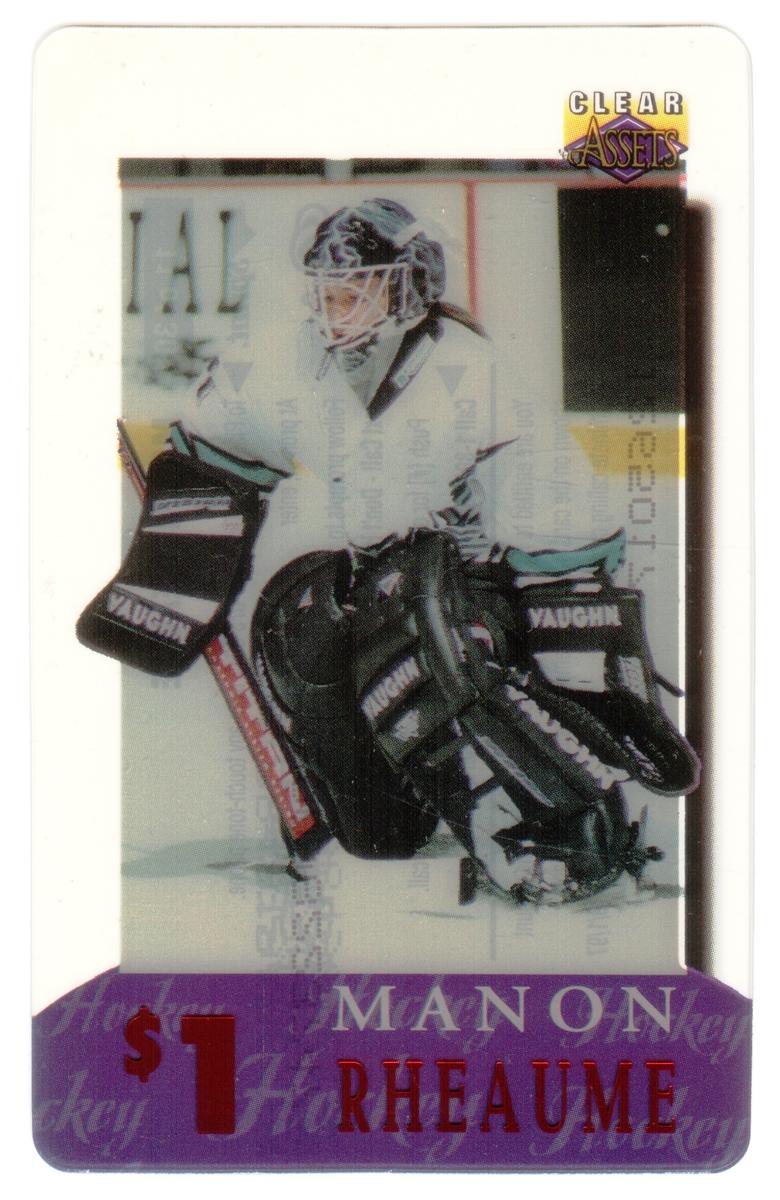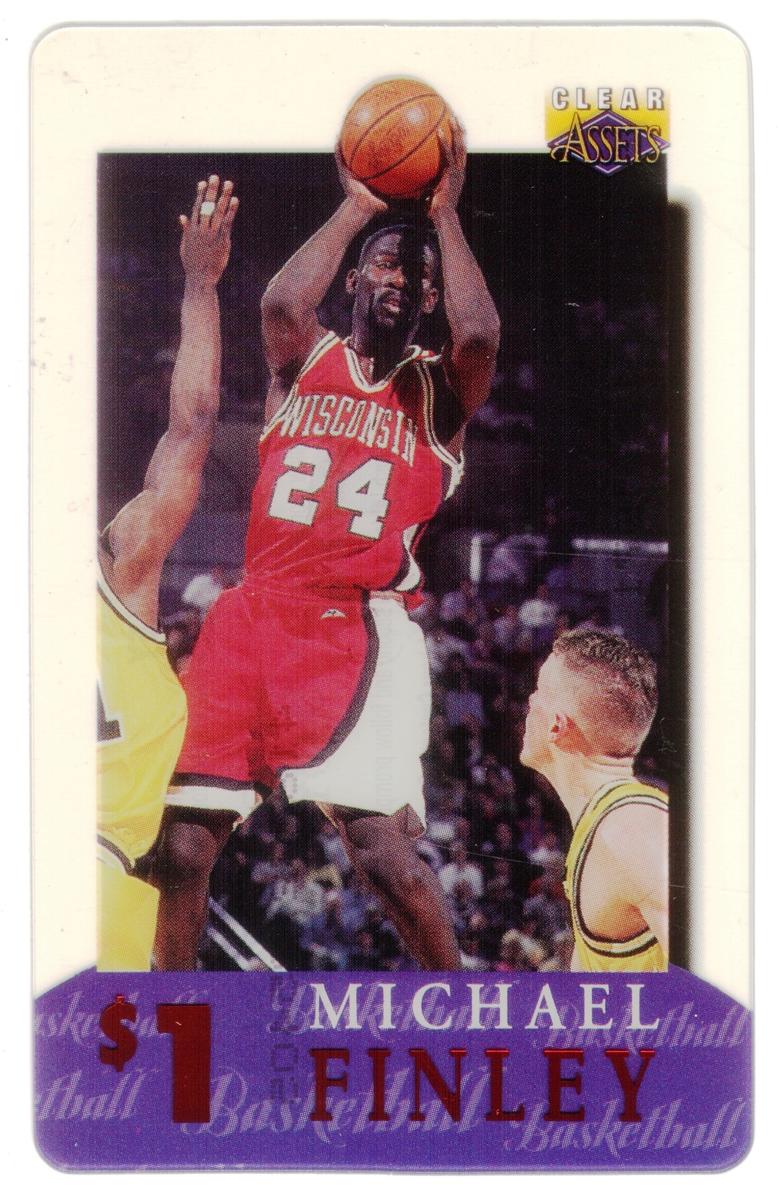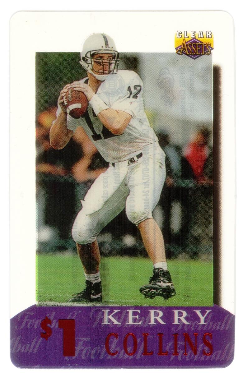 The cards combine sport-specific action shots and posed images, highlighting the athletes in mid-play or focused stances. The design is consistent and clean, featuring the Clear Assets brand prominently and a $1 valuation on every card, confirming their collectible value within the 1996 Clear Assets sports series.