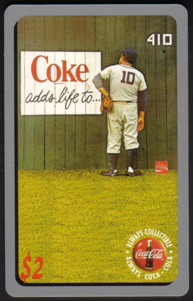 This collectible card is part of a series combining sports and Coca-Cola’s advertising presence, celebrating baseball and the brand’s long-time connection to the sport. The visuals, text, and logos together convey a strong tie-in between professional baseball culture and Coca-Cola marketing from the mid-1990s.