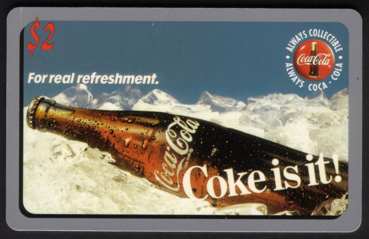 No additional text or graphics interrupt the clean composition focused on Coca-Cola branding and the theme of refreshment. The card is a collectible item that celebrates the brand’s advertising and product imagery from the mid-1990s.