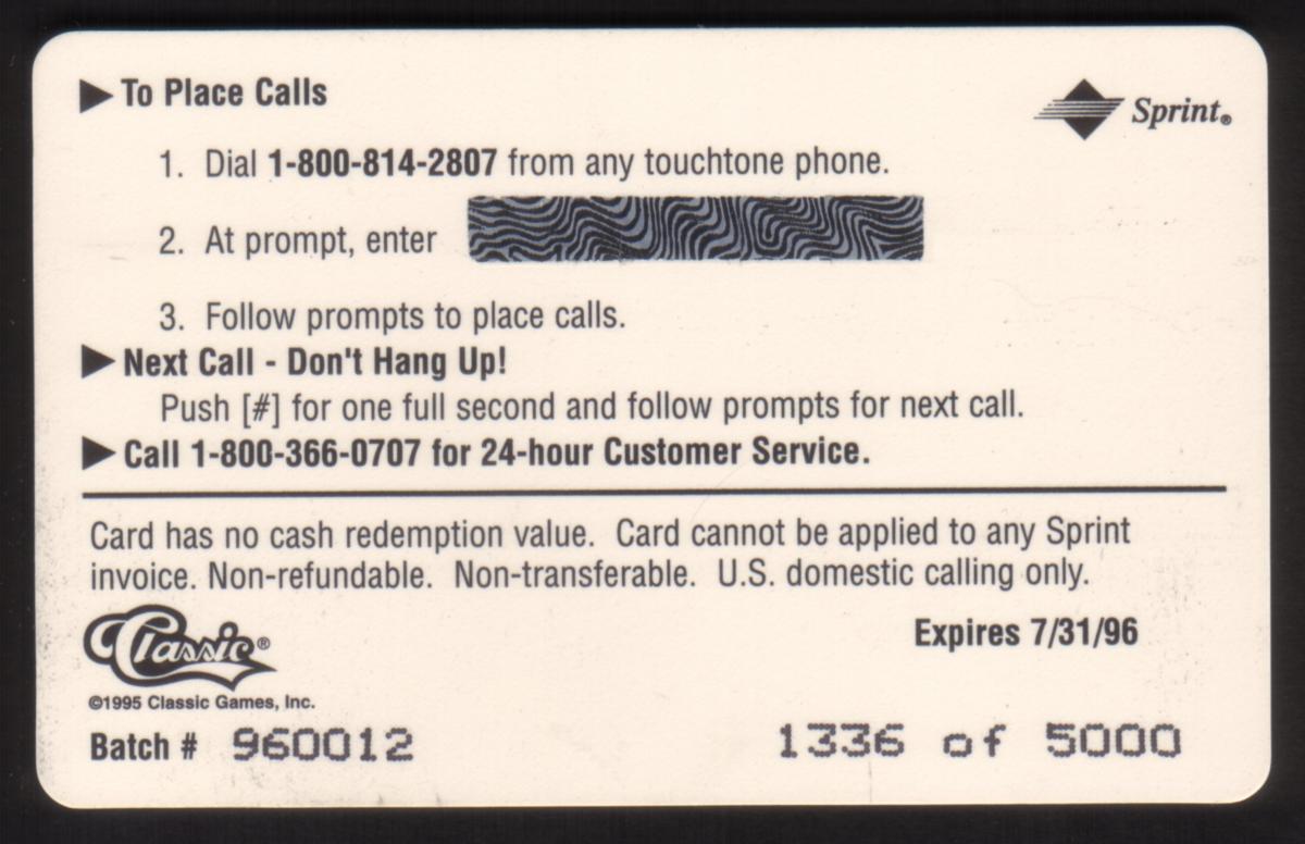 Since we have the world's largest inventory of USA phonecards for collectors, you will not necessarily receive the identical serial/batch/PIN number that we have scanned/pictured.