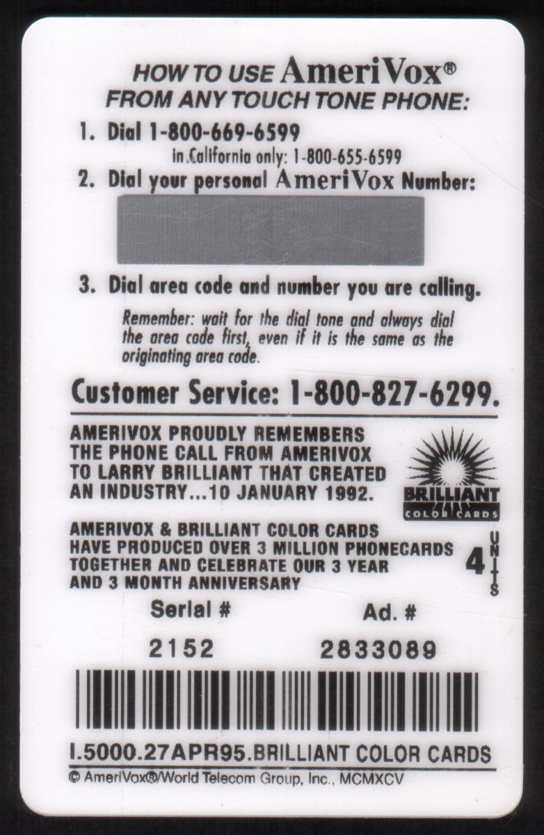 Since we have the world's largest inventory of USA phonecards for collectors, you will not necessarily receive the identical serial/batch/PIN number that we have scanned/pictured.