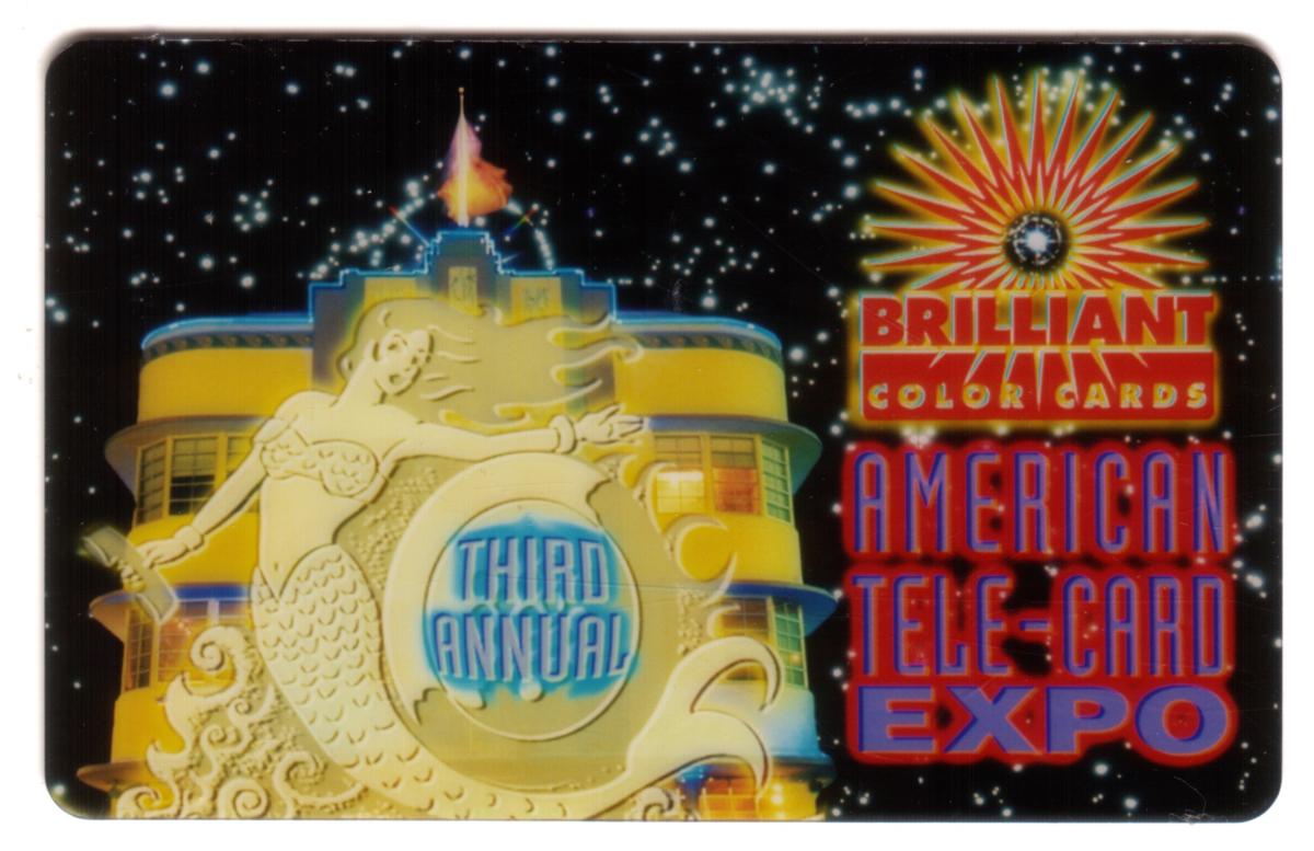 This phone card commemorates the Third Annual American Tele-Card Expo, a key event for telecard and phone card collectors, held in Miami, Florida. The superb color quality and thematic imagery link to the location known for its beaches and art deco architecture, making it a distinctive collectible from the mid-1990s telecard events. The prominent "Telecard Events" and "Miami Beach FL" keywords connect directly to this special expo card issued by Phone Comm Inc.