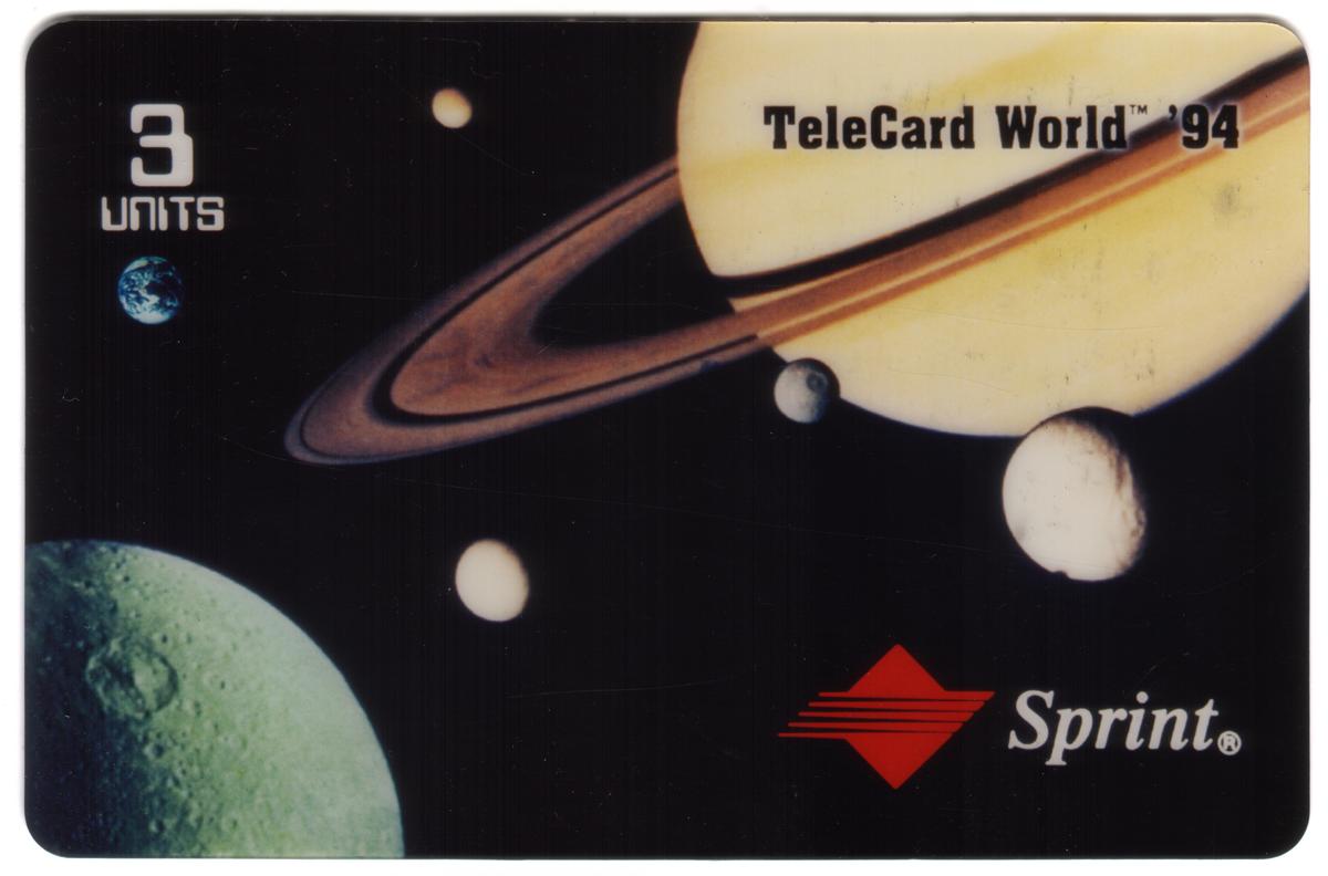 This is a terrestrial telecard designed specifically for phone use, emphasizing themes of outer space, the solar system, and Saturn’s moons. The card is part of the Telecard Events series from 1994, showcasing planetary imagery under the designation "Space & Planets Including Saturn," and it carries 3 units for phone usage.