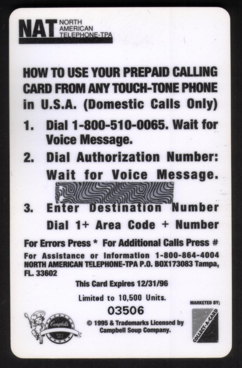Keywords: Corporate, trademarks, corporate logos, brandnames, advertisements, advertising, campbells soup, campbell's soup, north americamn telephone, serving quality for generations, the campbell's collection, cambells, cartoons, Collect-A-Card (NAT)