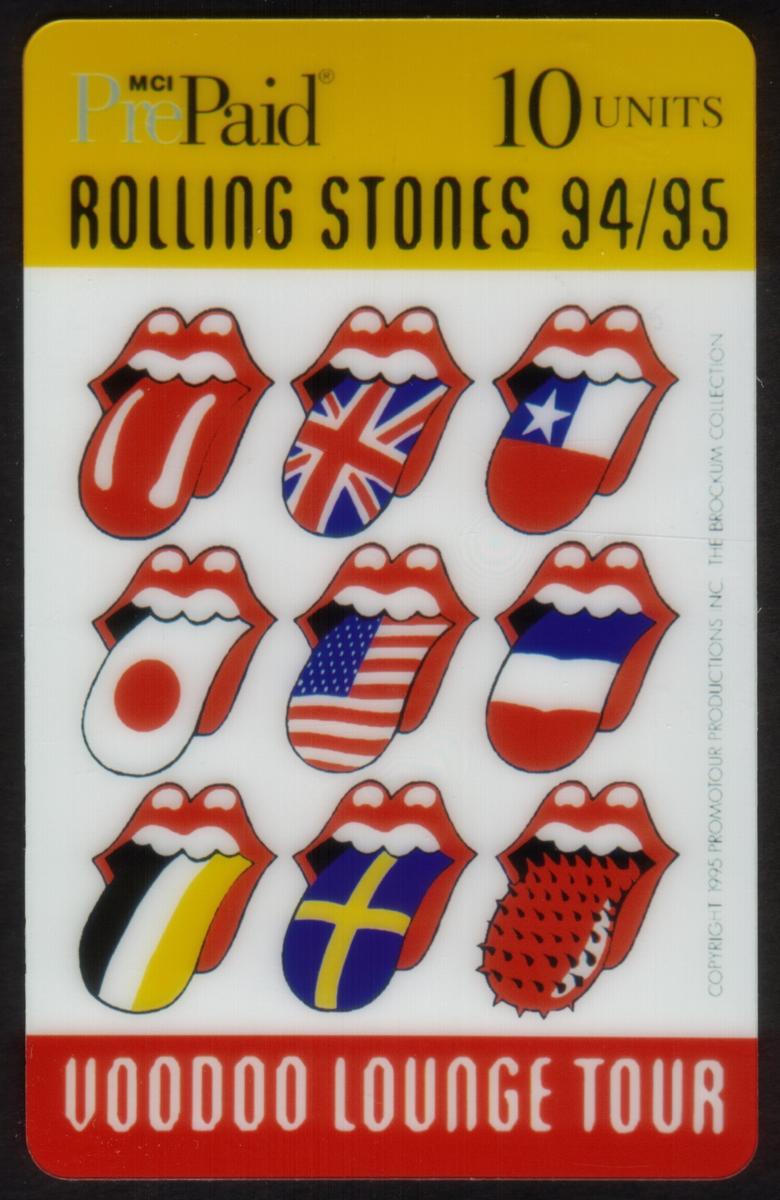 These Rolling Stones collectible phone cards commemorate the band’s 1994-1995 Voodoo Lounge World Tour. Each card features a unique design tied closely to the iconic imagery and branding of the Rolling Stones and their tour.