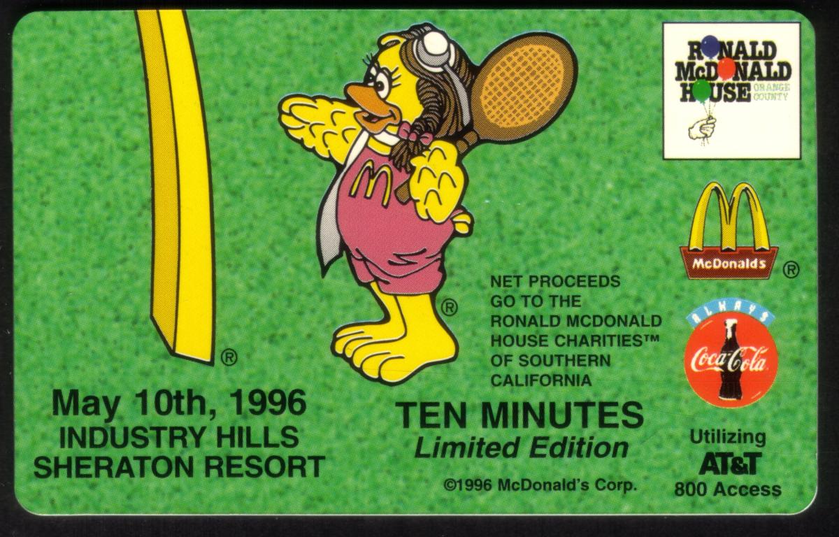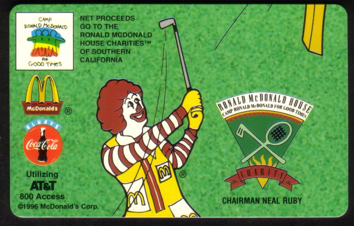 This collectible card features a design promoting McDonald's and Coca-Cola, highlighting golf and tennis tournaments. The card presents logos of McDonald's and Coca-Cola prominently, including the iconic Golden Arches symbol and the classic Coca-Cola logo. The overall theme centers on these two fast food and beverage brands in the context of sports, specifically referencing golf and tennis competitions.