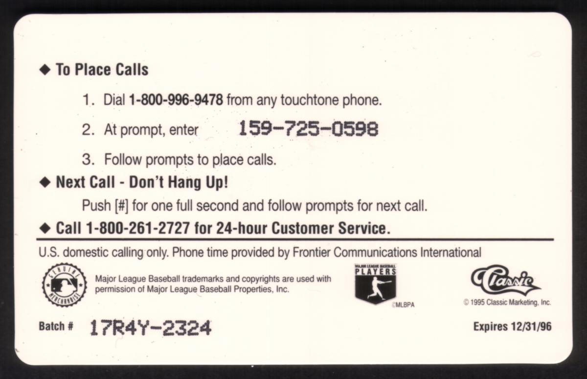 Since we have the world's largest inventory of USA phonecards for collectors, you will not necessarily receive the identical serial/batch/PIN number that we have scanned/pictured.