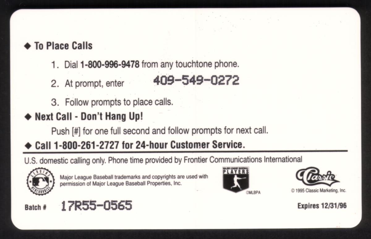 Since we have the world's largest inventory of USA phonecards for collectors, you will not necessarily receive the identical serial/batch/PIN number that we have scanned/pictured.