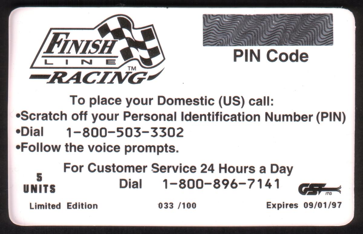 | 5u TeleCard World '96 Atlanta Georgia - April 1996 (PhonePak Racing) |