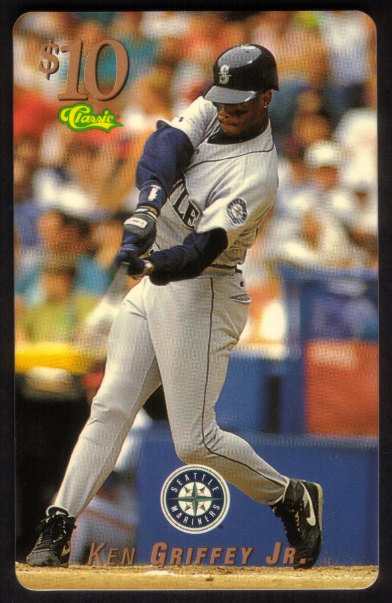 As a collectible issued by The Score Board Inc., this card represents a part of baseball history during the mid-1990s, focusing on one of the sport’s most iconic athletes during his tenure with the Seattle Mariners. The imagery and text combine to celebrate Ken Griffey, Jr.’s achievements and legacy in Major League Baseball.