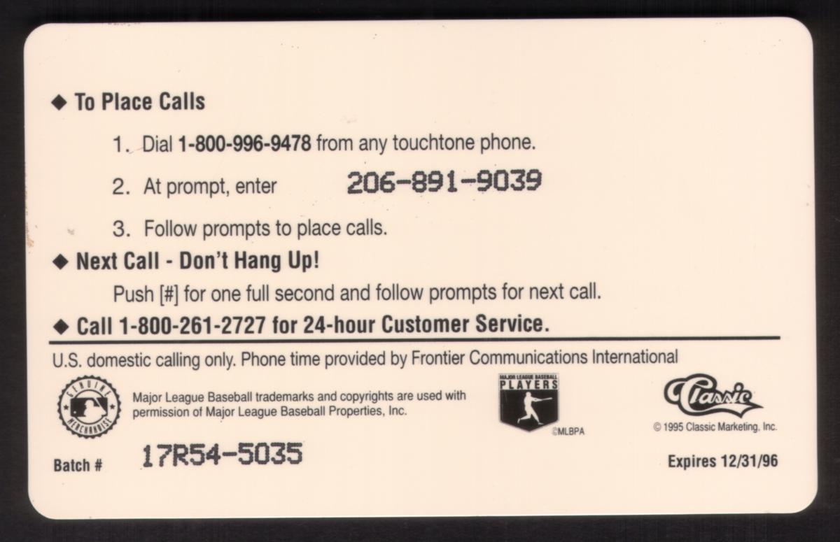 Since we have the world's largest inventory of USA phonecards for collectors, you will not necessarily receive the identical serial/batch/PIN number that we have scanned/pictured.