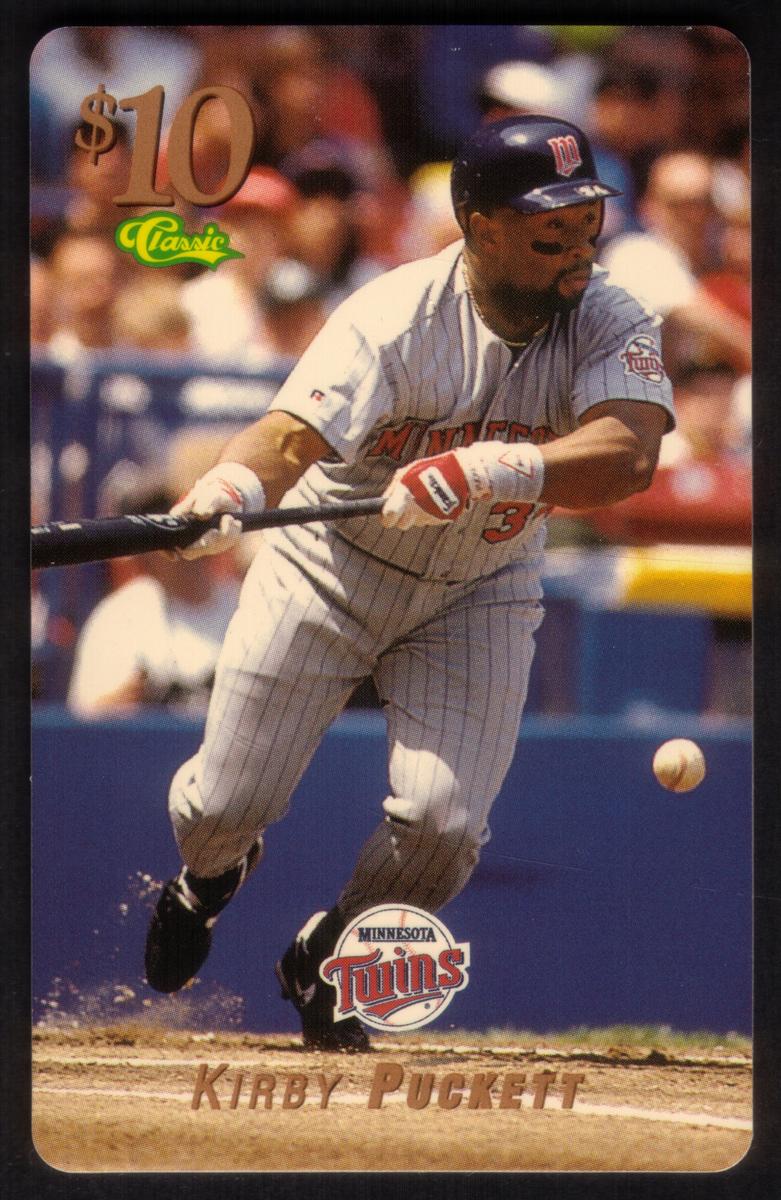 No additional promotional or unrelated graphics are present. The card’s front prominently uses imagery and text related to baseball, MLB, and the Minnesota Twins, making it a collectible piece for fans and collectors interested in baseball history and memorabilia centered around Kirby Puckett.