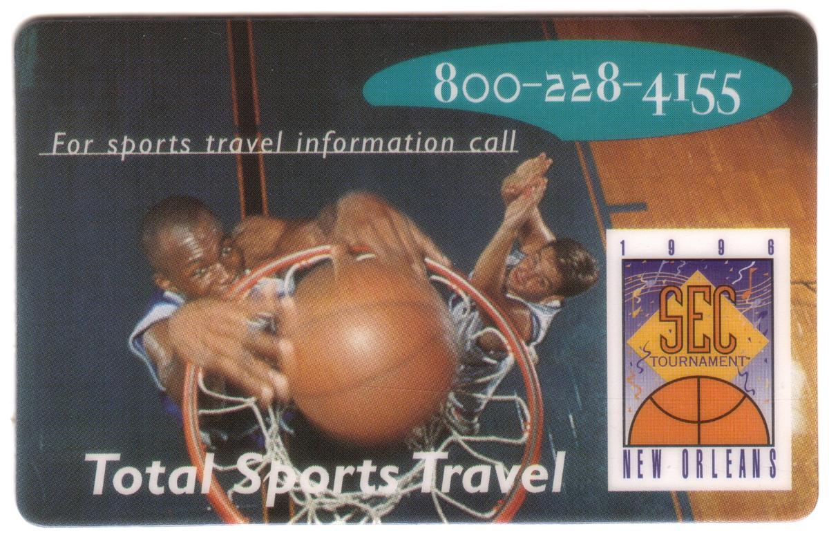 This card commemorates basketball activity connected to New Orleans and the 1996 SEC Tournament. It serves as a collectible sports card centered around basketball and travel basketball in Louisiana. No players’ names or team logos are visible on the card, focusing instead on the event and basketball imagery.