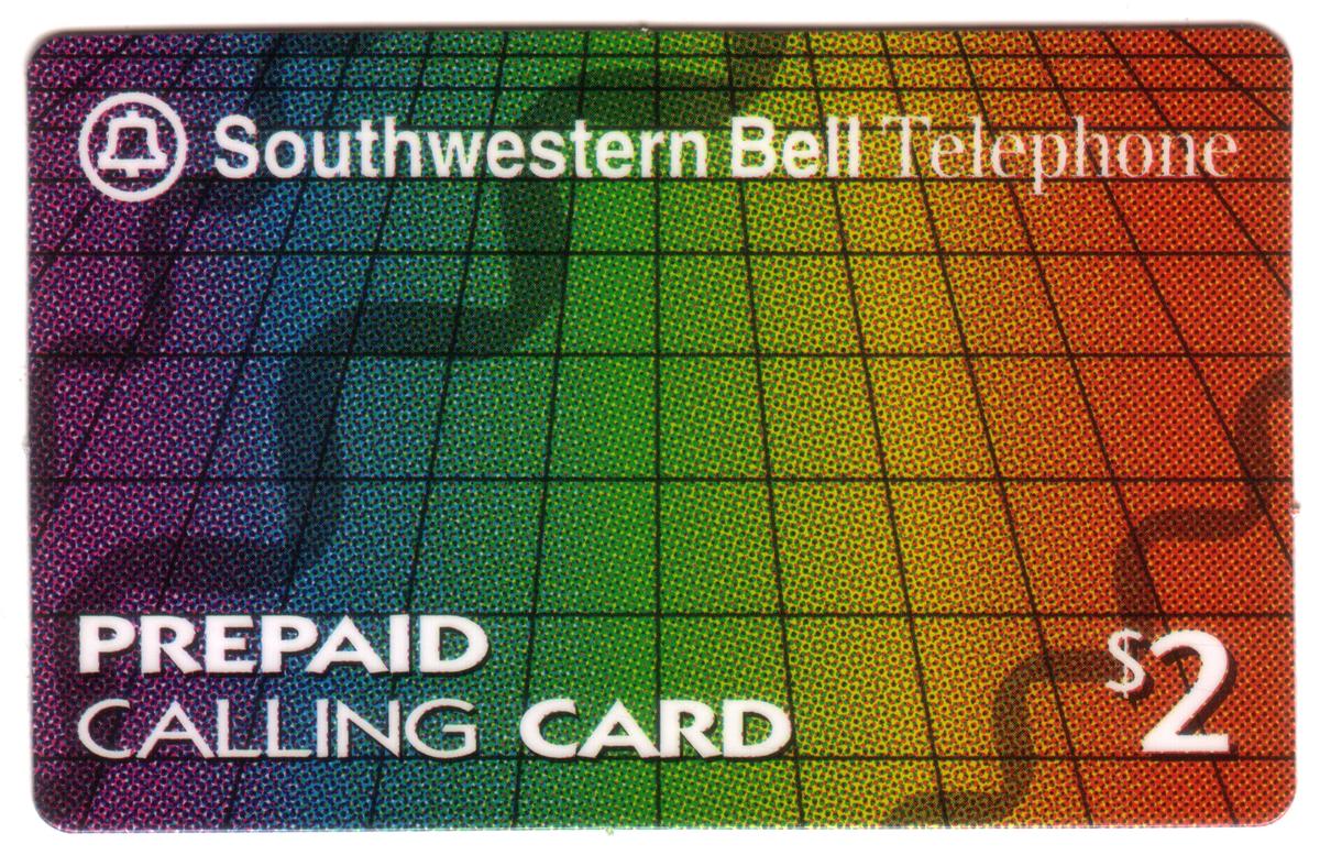 This collectible phone card is related to telecommunications and is specifically identified as a $2 Spectrum Card issued by Southwestern Bell. The combination of the rainbow-colored grid and the coiled wires visually represents the theme of connectivity and communication.