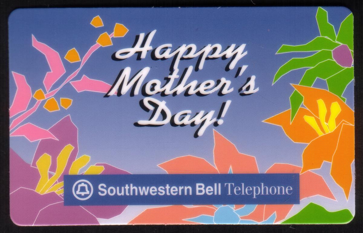 The card includes branding from Southwestern Bell, a telecommunications company, presented clearly on the front. The overall design combines themes of holiday celebration and nature, reflecting appreciation and warm wishes for mothers on their special day.