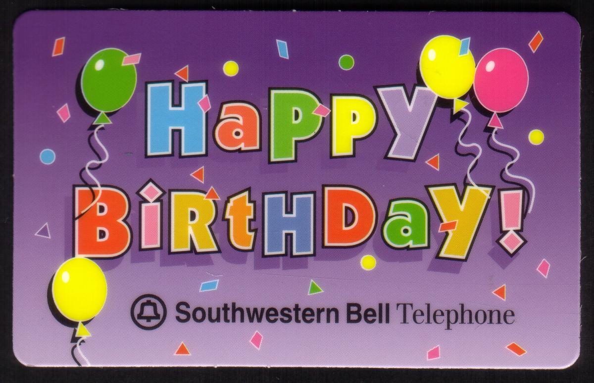 This phone card is designed to mark birthday celebrations and greetings, capturing the festive spirit with its vivid artwork of balloons and confetti. It is associated with Southwestern Bell and reflects themes of holiday and birthday parties. The overall composition is lively and joyful, making it suitable for collectors and users seeking a themed phone card that conveys birthday congratulations.