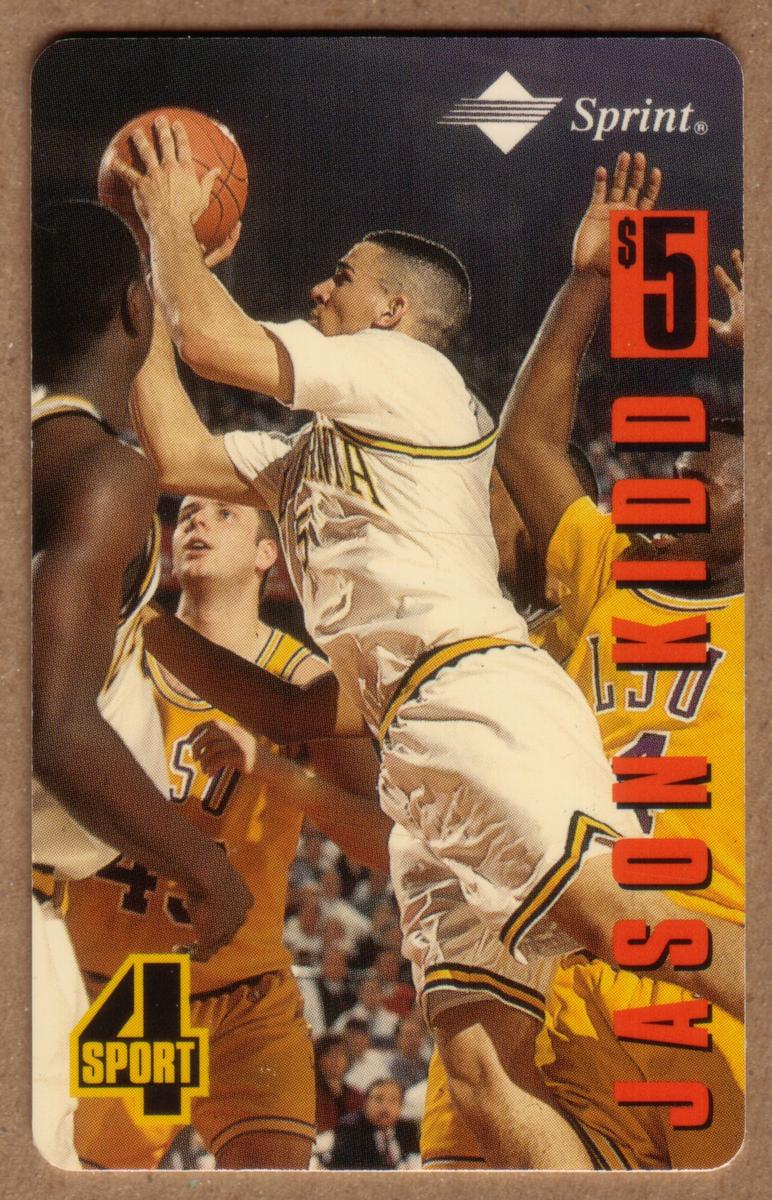 The design integrates basketball-related elements, including basketball imagery and references to the NBA, highlighting Jason Kidd's connection to professional basketball. The card also carries monetary asset information showing a $5 value, which may relate to the collectible's issuance or series numbering.