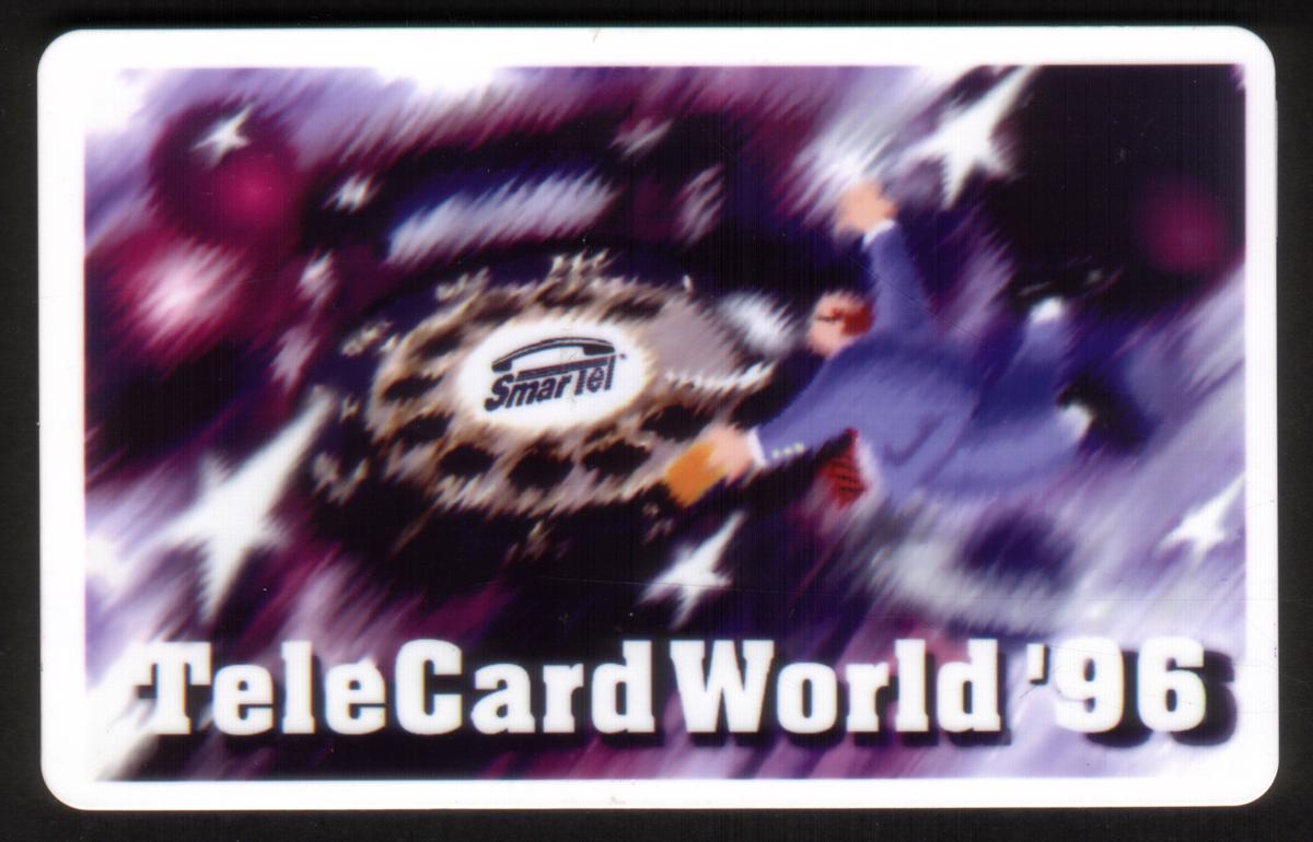 This set celebrates telecommunication technology through the lens of a significant industry event in Atlanta, emphasizing collectible phone cards as both functional items and memorabilia. The graphics blend traditional telephone imagery with outer space themes, reflecting the broad and innovative nature of telephony during that time. The presence of “TeleCard Events” and “SmarTel Communication” affirm the official and licensed nature of the collection within the telecommunications community.