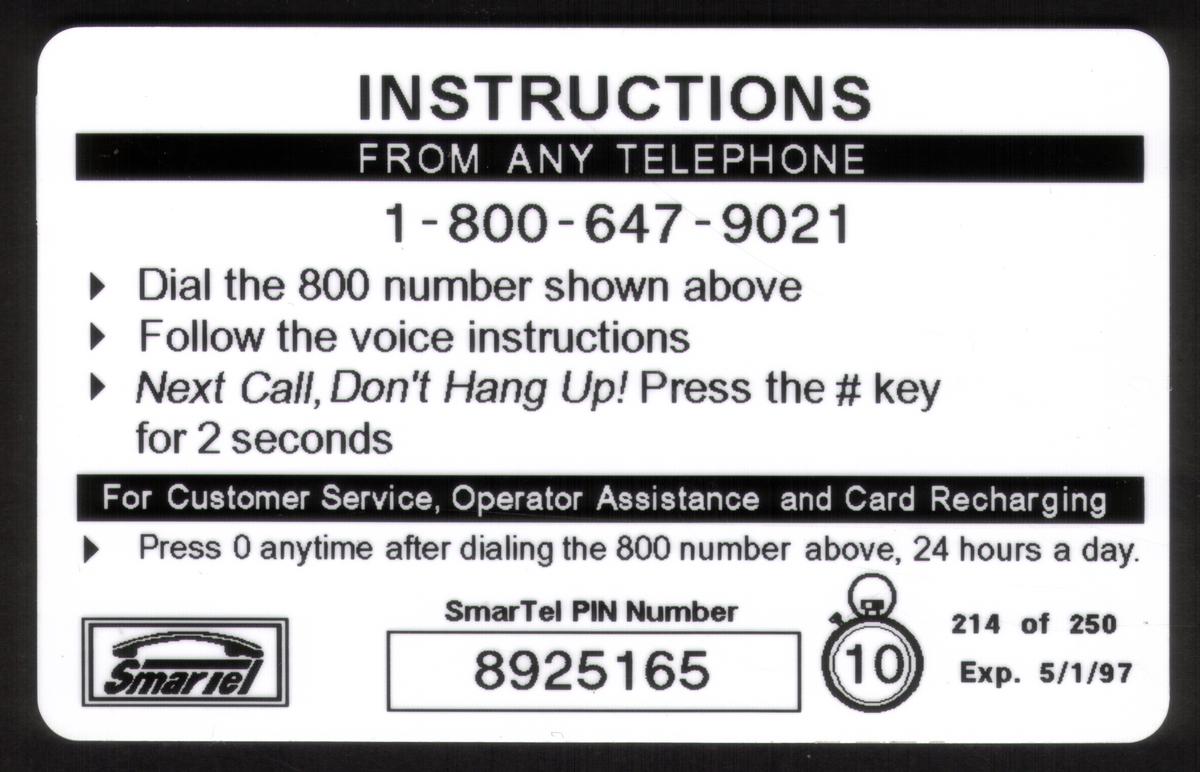 Since we have the world's largest inventory of USA phonecards for collectors, you will not necessarily receive the identical serial/batch/PIN number that we have scanned/pictured.